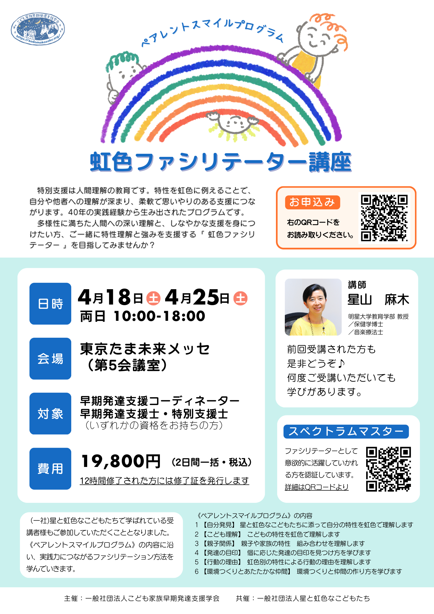 イベント2026.01.2726年度ペアレントスマイルプログラム虹色ファシリテーター講座のお申込みについて